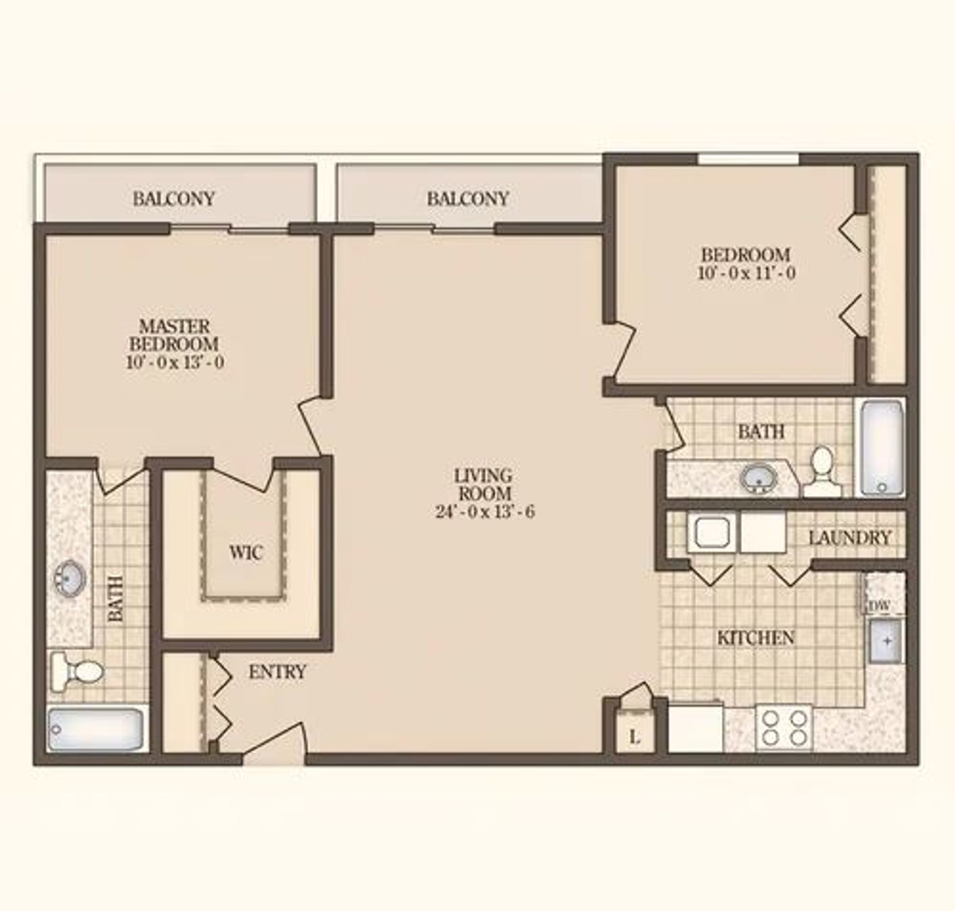 Spacious two-bedroom, two-and-a-half-bath townhome with a den