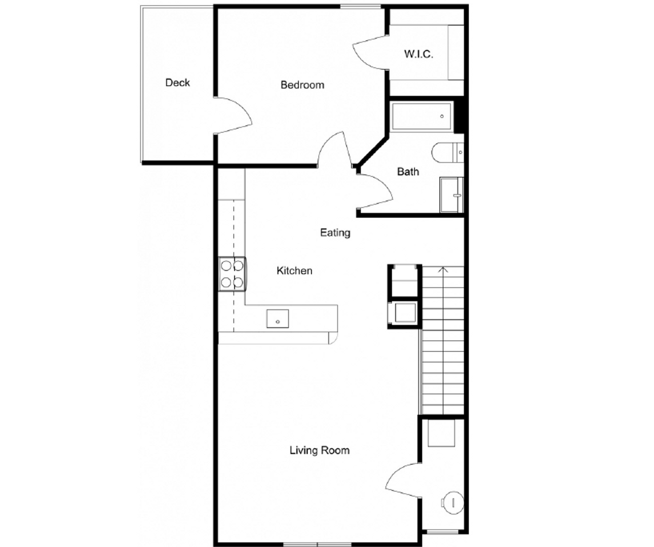 2nd floor (walk up) 1-bedroom apartment home with stainless steel appliance, in unit washer and dryer, and deck space.